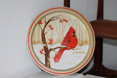 This old tray with a cardinal on it is in pretty good shape. It was covered with a layer of dirt, but now that it is cleaned up, I think it will look great in my consignment space along with the above items.