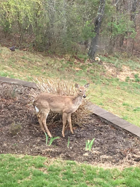 Before she ate all the buds off my wegalia bush, I had to coax her to leave the flower bed.