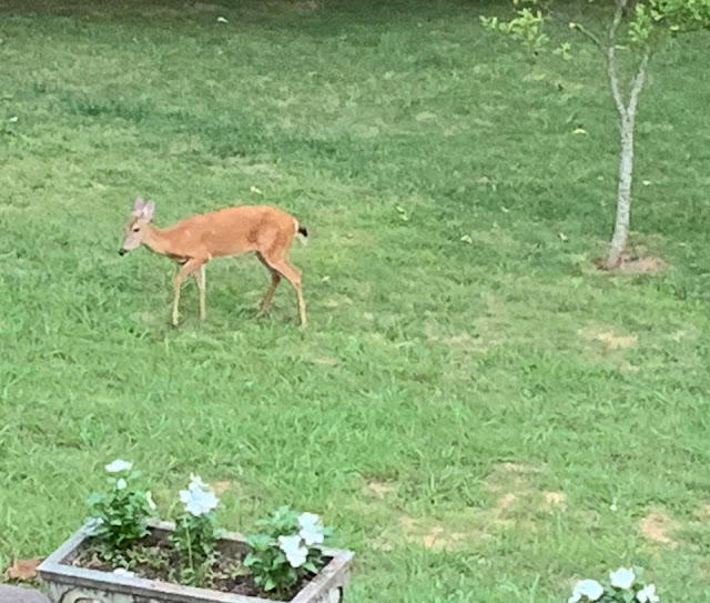 I walked out back to take a picture of the Crepe Myrtle (it is loaded and SO beautiful this year). Found Mama and little one back there headed into the woods.